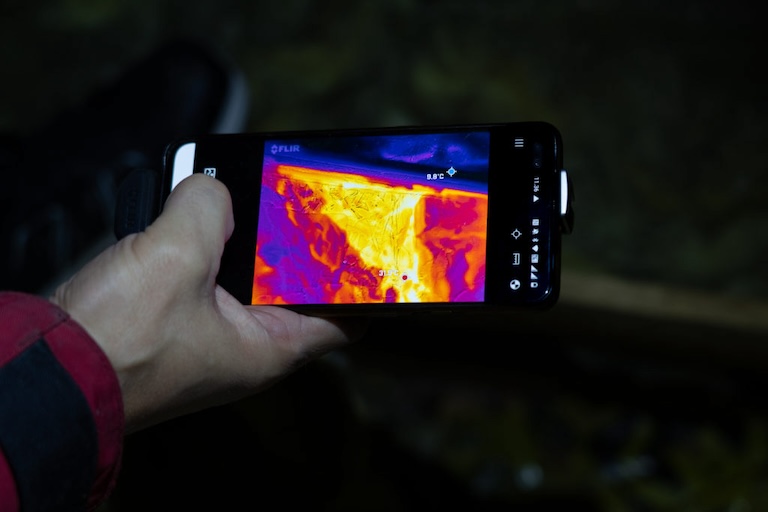 Höyrysulkumuovissa hiiren tekemä reikä, joka havaittiin lämpökameran avulla.
