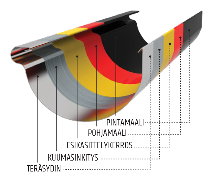 Teräs on ylivoimainen valinta sadevesijärjestelmän materiaaliksi alumiiniin verrattuna, sillä se kestää pohjoisen vaativat sääolosuhteet – pakkasen, sateen ja lumen – huomattavasti paremmin. Lisäksi teräksinen ränni sietää arjen kolhuja, kuten tikkaiden nojaamista, ilman vaurioita, toisin kuin alumiini, joka voi vääntyä helposti. Laadukas pinnoite suojaa terästä korroosiolta, säilyttäen sen toimivuuden ja siistin ulkonäön vuosikymmeniksi. Teräs on pitkäikäinen ja kestävä valinta, joka tarjoaa luotettavaa suojaa kaikissa olosuhteissa.